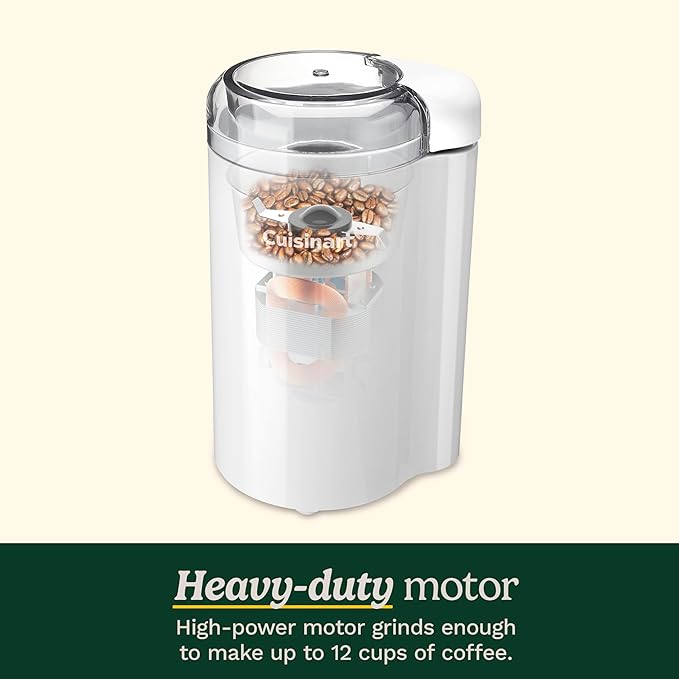 Cuisinart Coffee Grinder, One Touch Control Coffee Bean Grinder with Stainless Steel Bowl and Blades, 2.5 oz/70g Capacity Enough for 12 Cups, On/Off Switch with Safety Interlock, DCG-20N, White