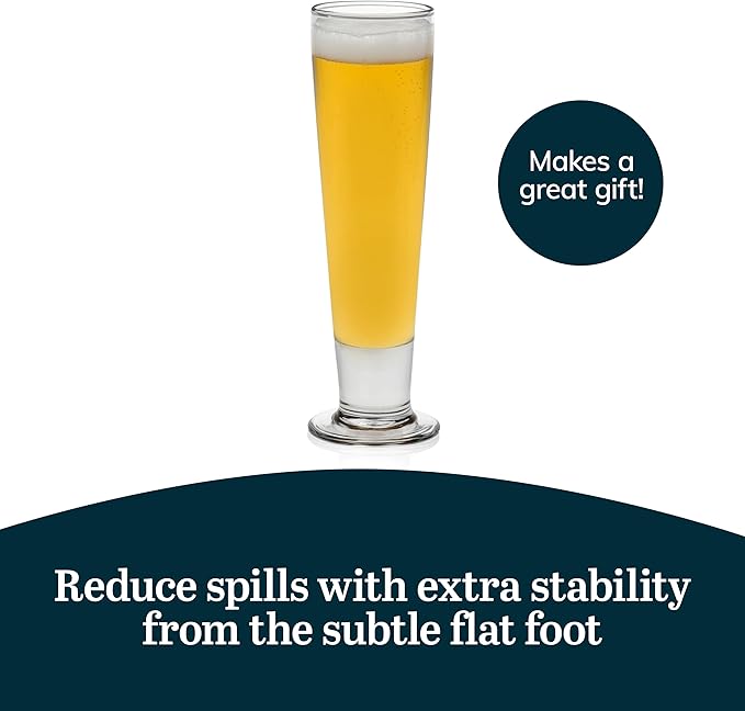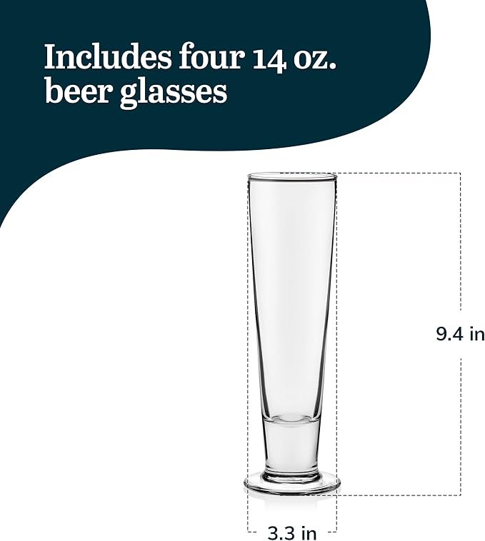 Libbey Stockholm Pilsner Beer Glasses Set of 4, 14.5oz, Tall Pint Glasses for Pilsner, Kolsch, Lager, and More, Unique Beer Gift Set