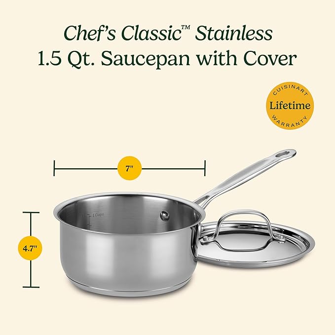Cuisinart 1.5 Quart Saucepan w/Cover, Chef's Classic Stainless Steel Cookware Collection, 719-16