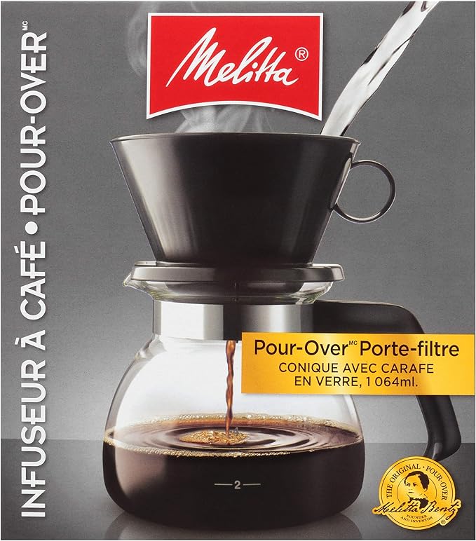 Melitta Pour-Over Coffee Brewer W/ Glass Carafe, Holds 6 - 6 Oz Cups, Black