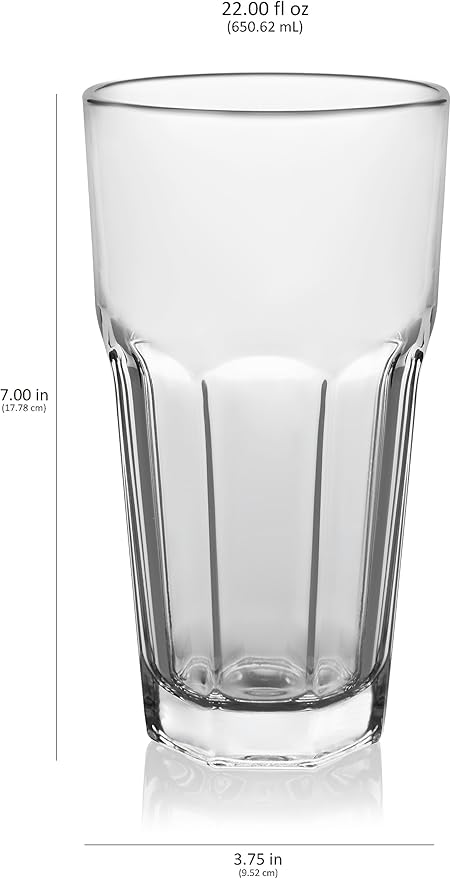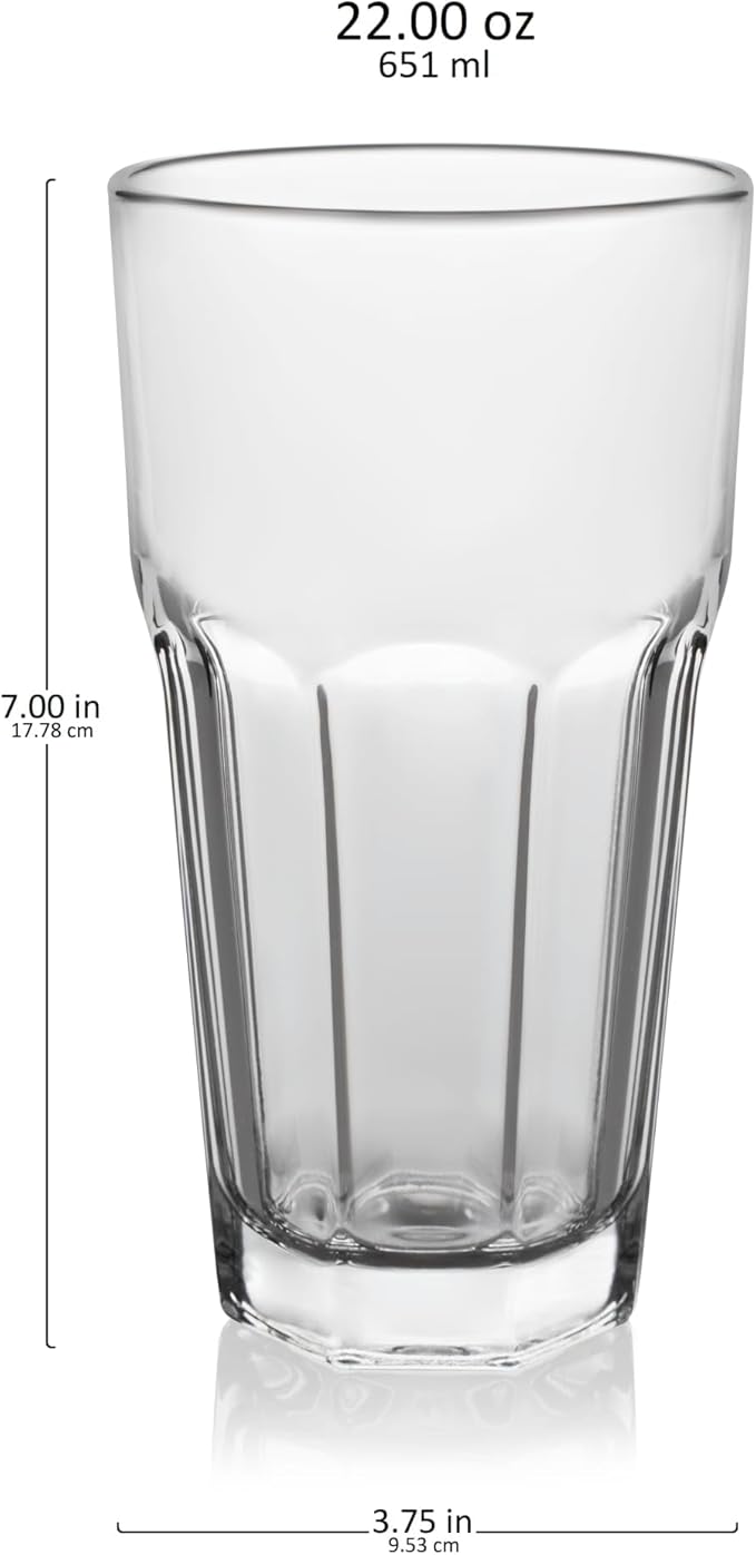Libbey Gibraltar Iced Tea Glasses, 22 ounce, Tall Tempered Cocktail Glass Tumbler Set of 12, Ice Tea Glasses for Parties and Everyday Use