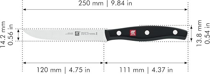 About This Set includes 4 x 4.5-inch blade fine edge steak knives Special formula high carbon NO STAIN steel One-piece... Read more