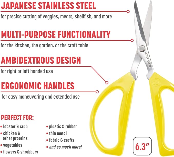 Joyce Chen Original Unlimited Kitchen Scissors All Purpose Kitchen Shears With Comfortable Handles, Yellow