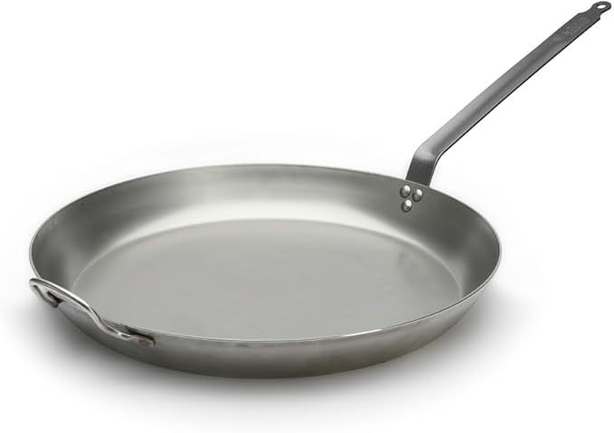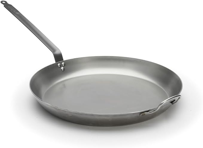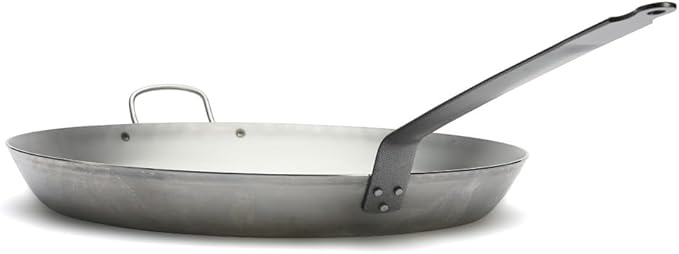 DE BUYER 5110.50 'Carbon Plus' Round Stove Lyonnaise Cup - Tail Feather Riveted - Steel Sheet White - Diameter 50 cm