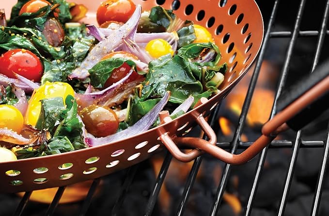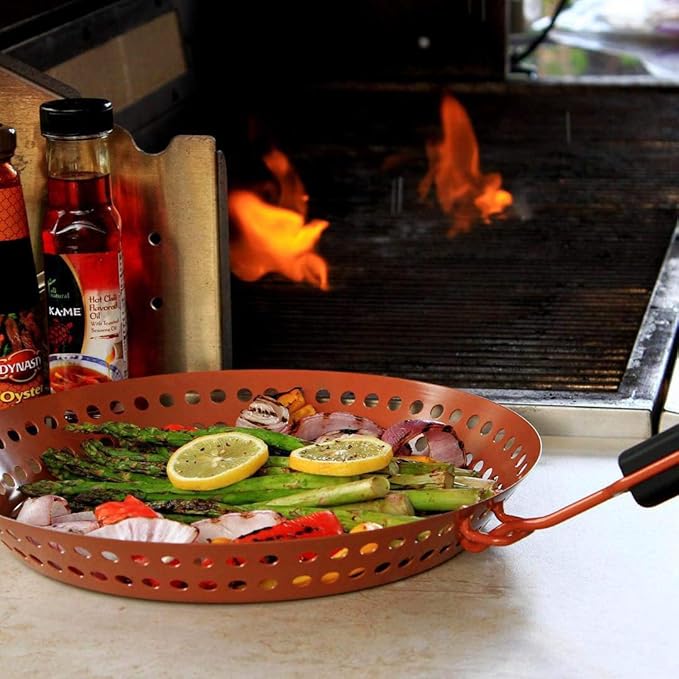 Outset QN77 Grill Skillet with Removable Soft-Grip Handle, Copper Non-Stick