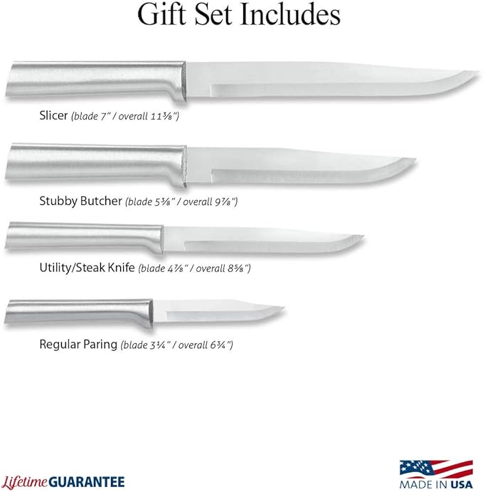 Rada Cutlery 4-Piece Wedding Register Knife Gift Set (S04), Stainless Steel Hollow Ground Blades, Made in USA, Silver Handles