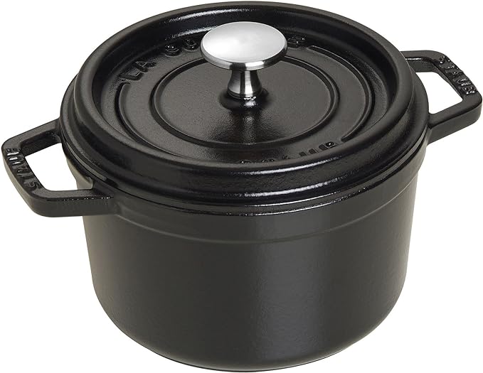 STAUB Cast Iron Dutch Oven 1.25-qt Round Cocotte, Made in France, Serves 1, Matte Black