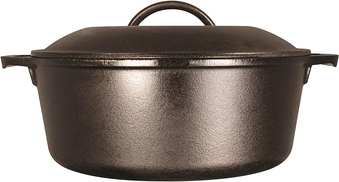 Lodge 7-Quart Cast Iron Dutch Oven – Made in USA, Pre-Seasoned, PFAS-Free & Non-Toxic, Heat-Treated, Induction Compatible, Self-Basting Lid, Durable Multi-Use Cooking Pot for Oven to Table