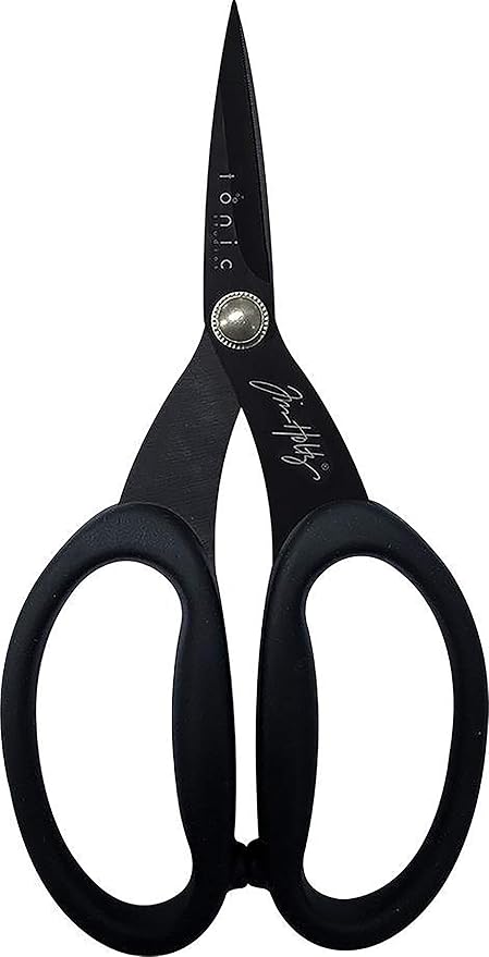 Tim Holtz Small Titanium Scissors - 7 Inch Mini Snips with Micro Serrated Blade - Non Stick Craft Tool for Cutting Paper, Fabric, and Sewing - Black Comfort Grip Handles