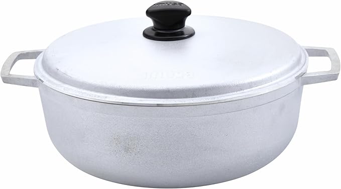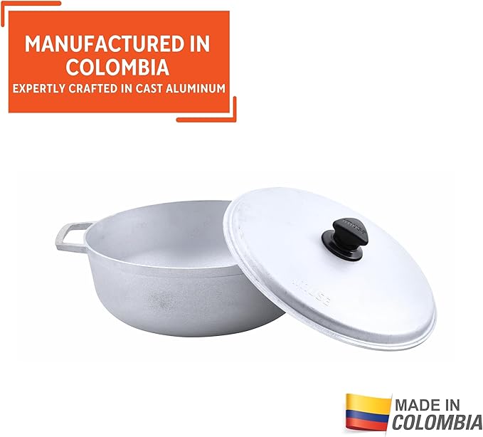 IMUSA 7.5 Quart Traditional Natural Made in Colombia Caldero with Lid for Cooking and Serving,Silver