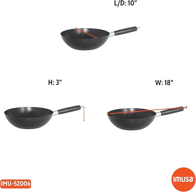 IMUSA 9.5in Carbon Steel Nonstick Wok with Cool Touch Handle, Black