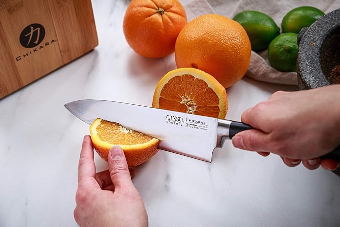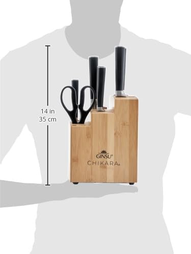 Ginsu Chikara Series Forged 8-Piece Japanese Knife Set, Black - Premium Cutlery Set with 420J Stainless Steel Kitchen Knives and Bamboo Block