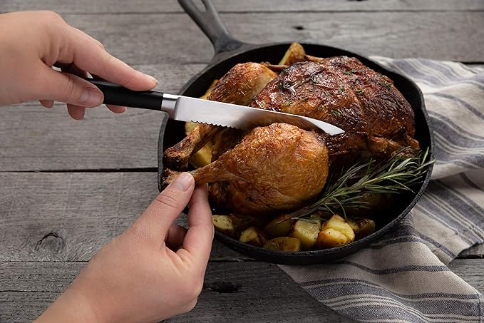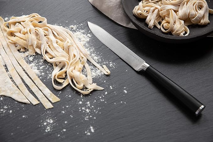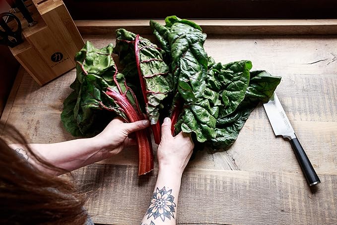 About This Included Components: 8” Chef Knife, 7” Santoku Knife, 5” Utility Knife, 5” Serrated Utility Knife, 3.5” Paring Knife,... Read more