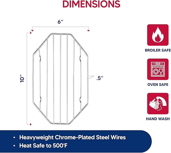 HIC Kitchen Roasting Octagonal Baking Rack, Chrome-Plated Steel Wire, Fits Oval And Smaller Roasting Pans, 10 x 6 x 0.5-Inches