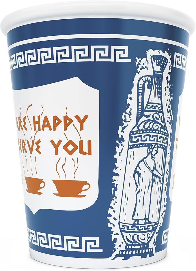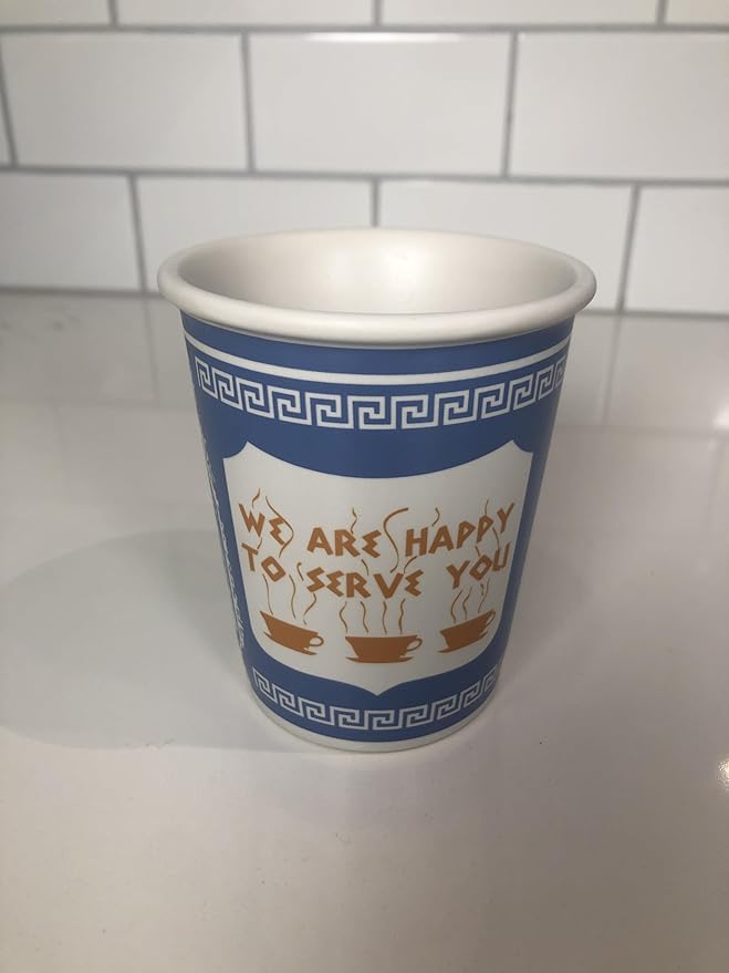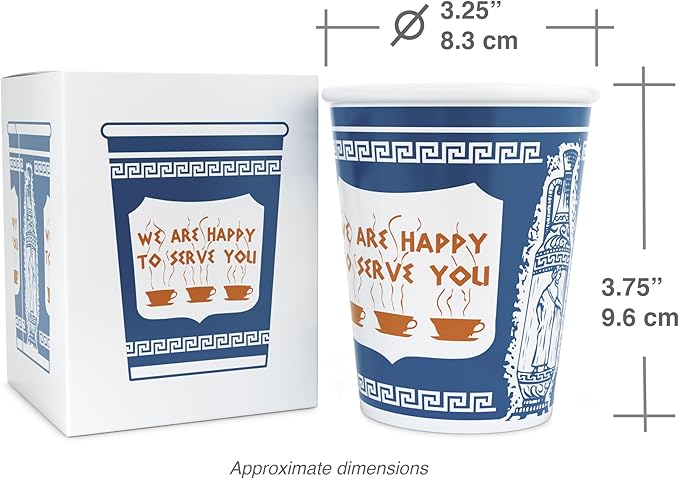 10 oz Ceramic New York City Greek Coffee Cup "We are Happy to Serve You"