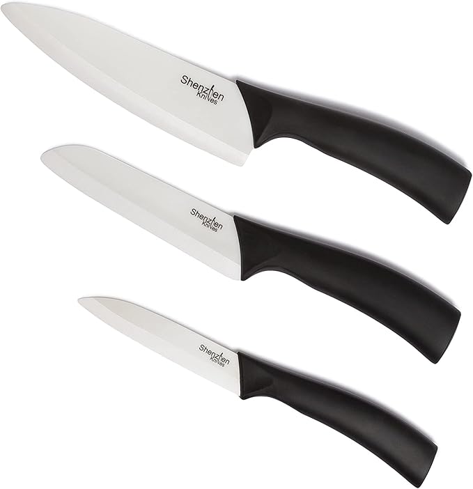 Shenzhen Knives White Ceramic Knife Set - 3-Piece Kitchen Knives Bundle: 6" Chef's, 5" Slicing, and 4" Paring Knife. Lightweight Kitchen Cutlery for Precision Slicing and Cooking