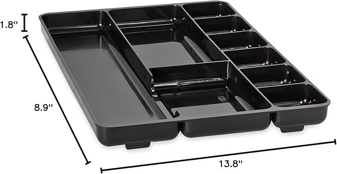 Rubbermaid Regeneration 9-Section Drawer Organizer, Plastic, 14 x 9.125 x 1.125 Inches, Black (45706)