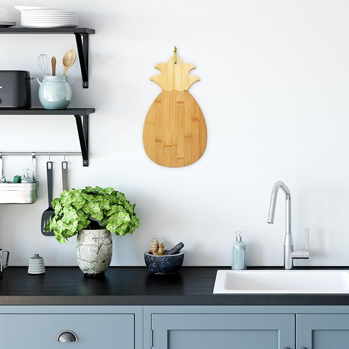 Totally Bamboo Pineapple Shaped Bamboo Wood Cutting Board and Charcuterie Board, 14-3/8" x 7-1/2"