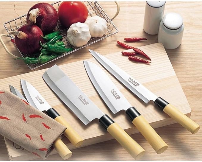 About This Japanese kitchen knife Sushi sashimi knife, Vegetable nakiri knife, Chef's knife, Petty knife, and Small deba knife Made... Read more
