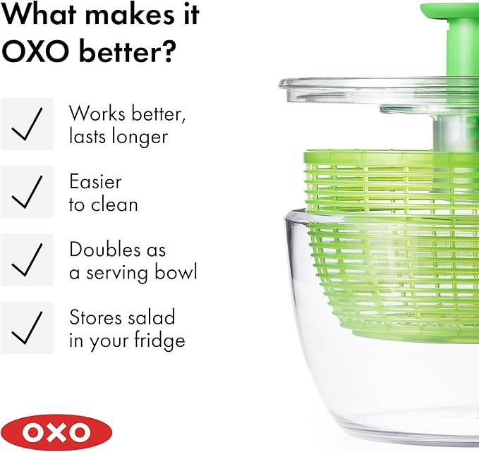 OXO Good Grips Salad Spinner - Large, Green Lettuce & Fruit Washer, BPA-Free, Easy One-Hand Pump
