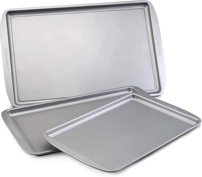 Farberware Nonstick Bakeware 3-Piece Cookie Pan Set, Gray