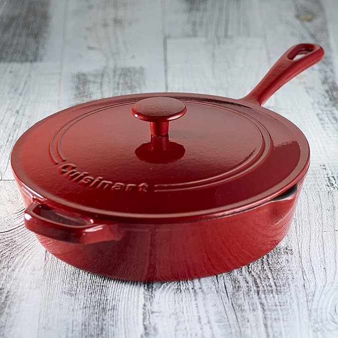 Cuisinart 12-Inch Cast Iron Chicken Fryer with Lid, 4.5 Quart Capacity, Porcelain Enameled Interior, Oven Safe, Induction Compatible, Cardinal Red