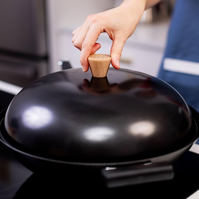 About This Carbon Steel Imported Nonstick inside and out Birch wood knob Fits 14-inch diameter woks; Lid size 13.5-inch diameter... Read more