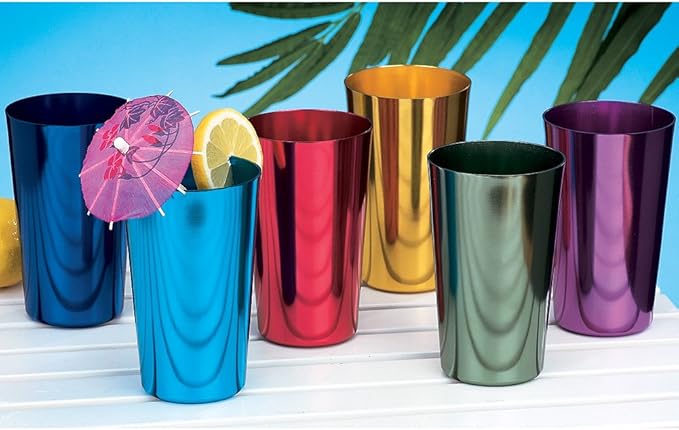 About This Set of 6. Measures approx. 3 x 5 inches. Anodized aluminum. 16 ounce tumblers. One of each color:... Read more