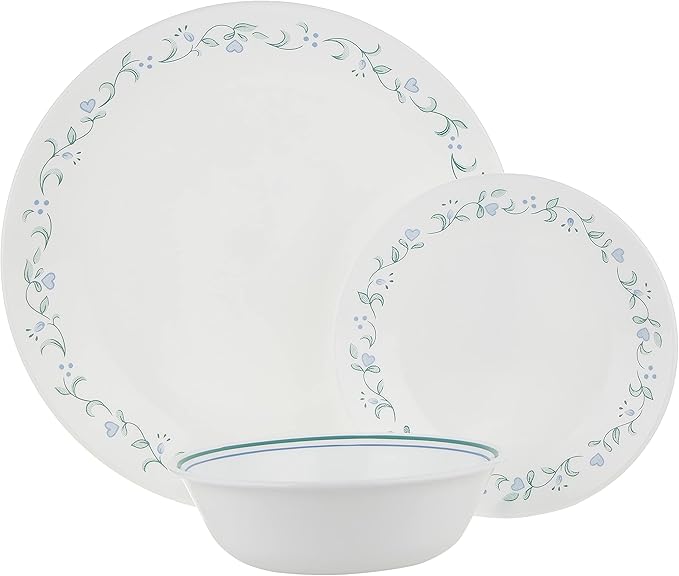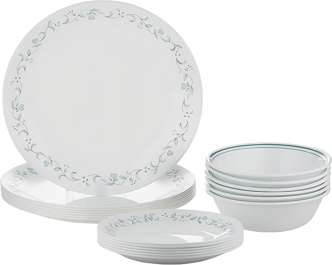 Corelle 18-Piece Vitrelle Glass Country Cottage Chip and Break Resistant Dinner Set, Service for 6, Green/Blue