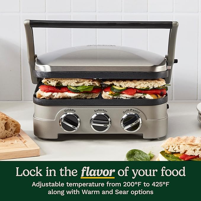 Cuisinart Griddler Indoor Grill, Panini Press, Sandwich Maker & More, 5-in-1 Grilling, Dishwasher-Safe Nonstick Cooking Plates, GR-4NP1, Stainless Steel