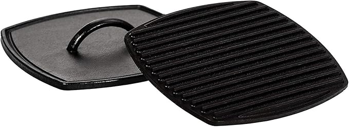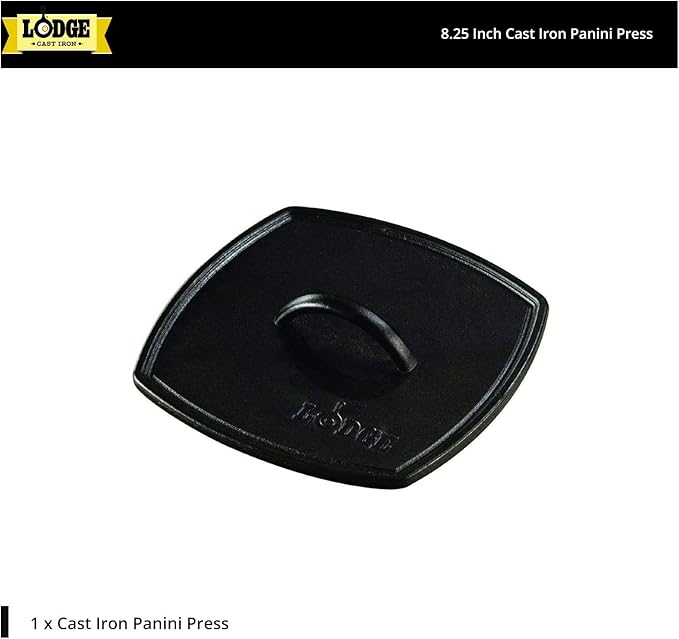 Lodge LPP3 Cast Iron Square Ribbed Panini Press, 8.25-inch