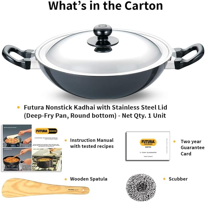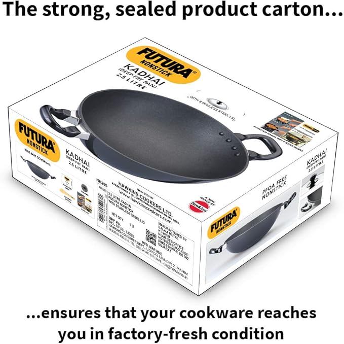 Hawkins Futura Nonstick Kadhai 2.5 L, 26 cm, 3.25 mm with SS lid (Black)
