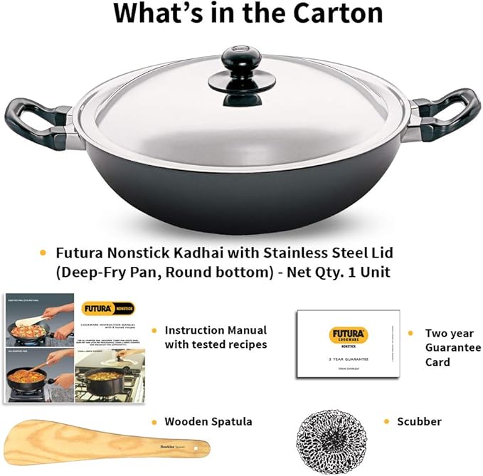 HAWKINS Futura Nonstick Kadhai 4 L, 30 cm, 3.25 mm with SS lid