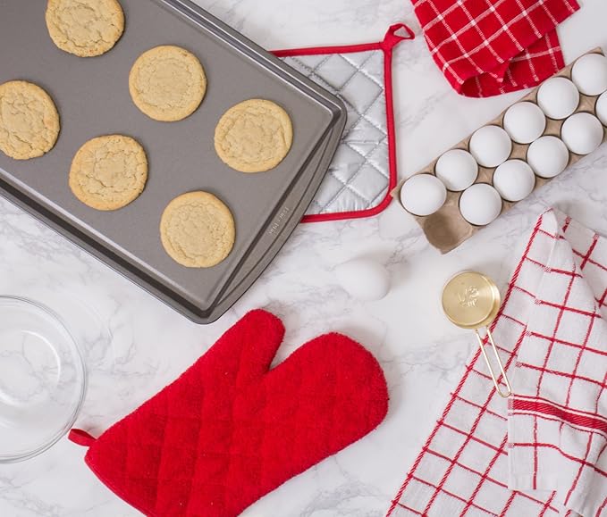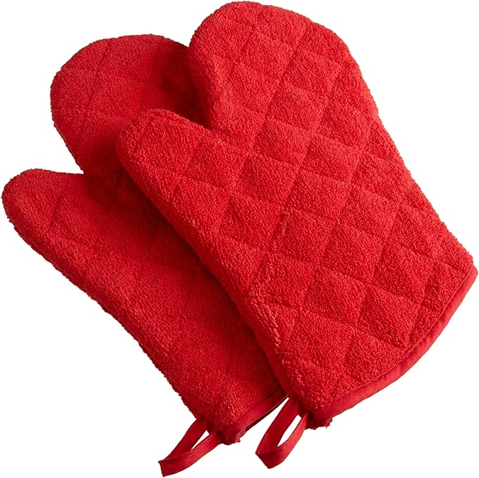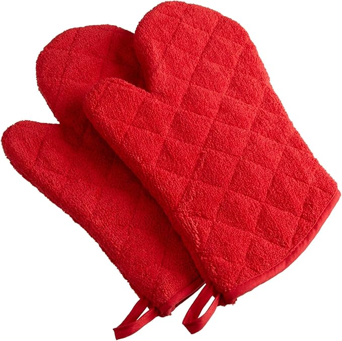 DII Basic Terry Collection 100% Cotton Quilted, Oven Mitt, Red, 2 Piece