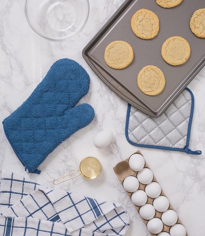 DII Basic Terry Collection 100% Cotton Quilted, Oven Mitt, Blue, 2 Piece