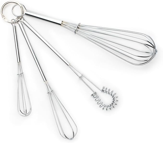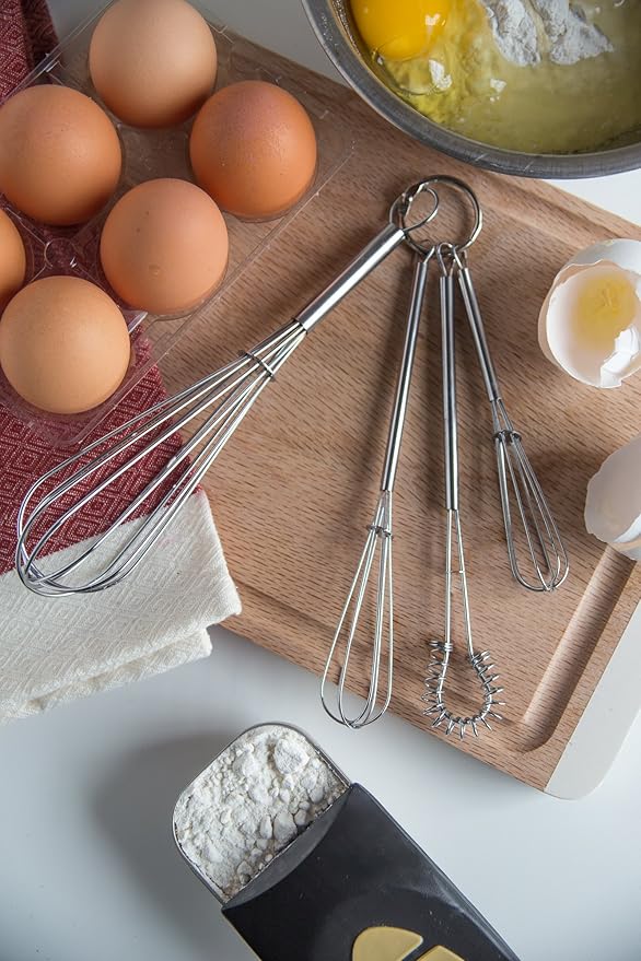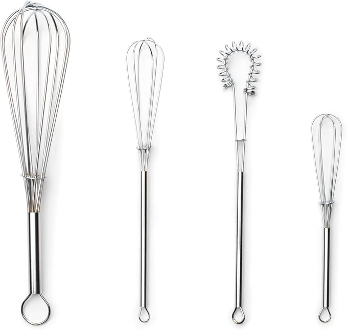 About This Set of 4 essential whisks - 5 inch, 7 inch, 7.25 inch, 8 inch Made of chrome plated... Read more