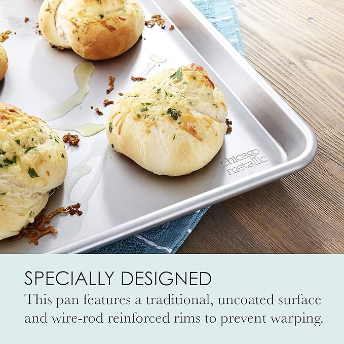 Chicago Metallic Commercial II Traditional Uncoated Large Jelly Roll Pan, perfect for jelly rolls, cookies, pastries, pizza, one-pan meals, roasted vegetables, and more, 16-3/4 by 12-Inch
