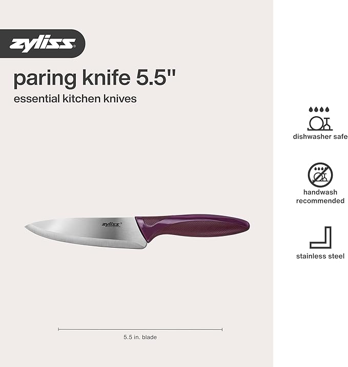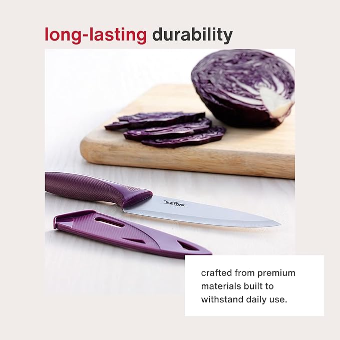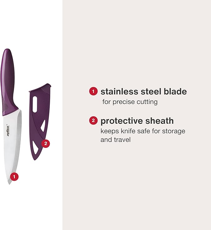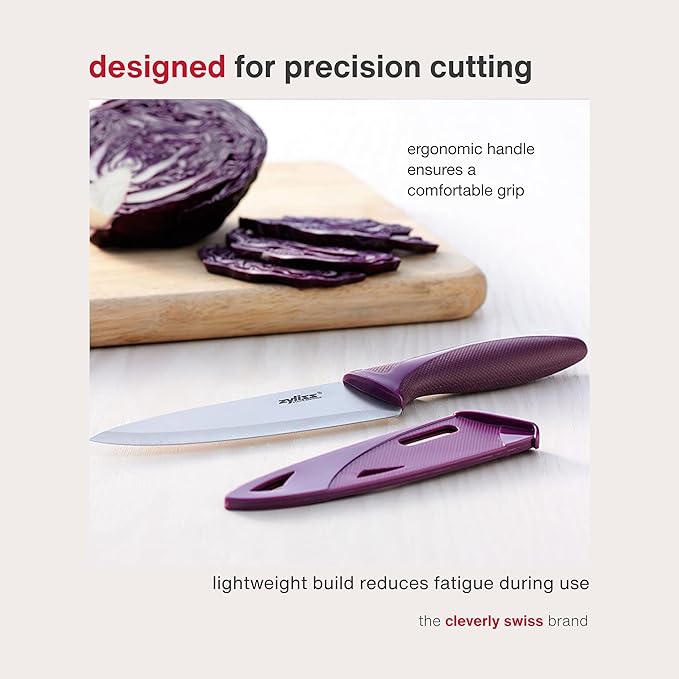 Zyliss Utility Knife with Sheath Cover - Precision Knife for Cutting & Slicing - Paring Knife for Meat, Fruits & Vegetables - Culinary Kitchen Knife - 5.5" Carbon Stainless Steel Blade - Purple