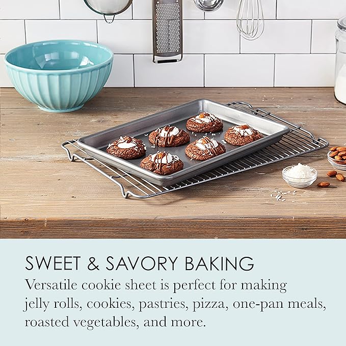 Chicago Metallic Commercial II Non-Stick Small Cookie/Baking Sheet. Perfect for making jelly rolls, cookies, pastries, one-pan meals, and more,12.25 by 8.75, Gray