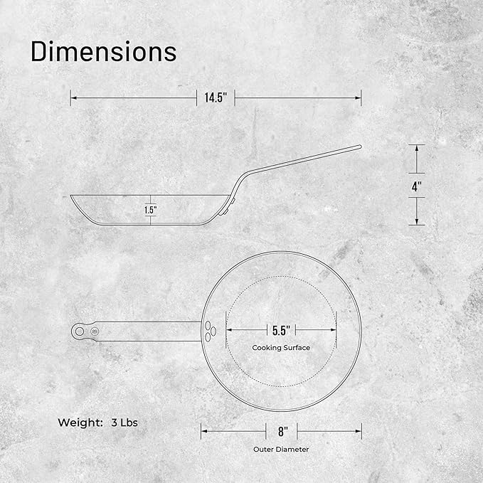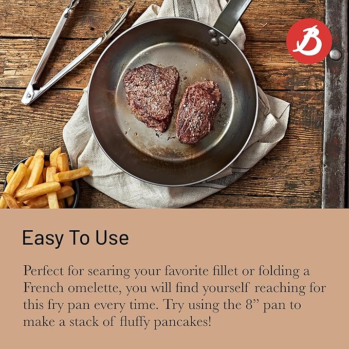 De Buyer MINERAL B Carbon Steel Fry Pan - 8” Diameter, 5.5” Cooking Surface - Ideal for Searing, Sauteing & Reheating - PFAS, PFOA & PFOS Free - Made in France
