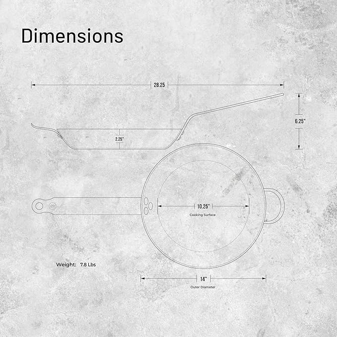 De Buyer MINERAL B Carbon Steel Fry Pan - 14” Diameter, 10.25” Cooking Surface - Ideal for Searing, Sauteing & Reheating - PFAS, PFOA & PFOS Free - Made in France