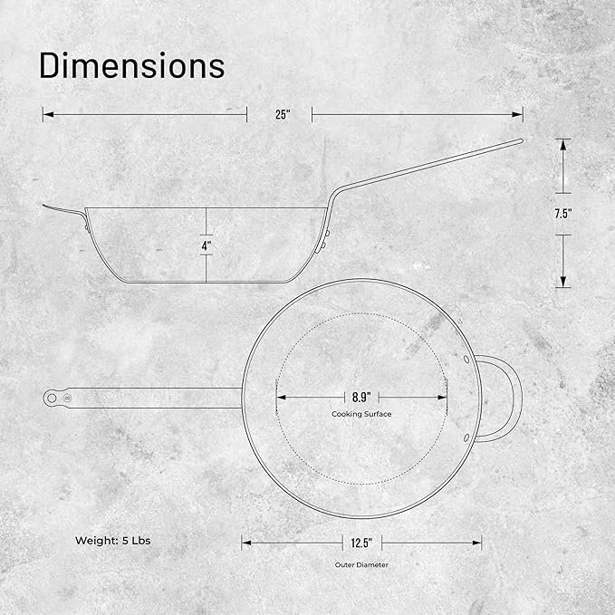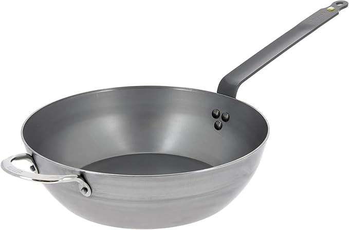 de Buyer MINERAL B Carbon Steel Country Fry Pan - 12.5” Diameter, 8.9” Cooking Surface - Ideal for Sauteing, Simmering, Deep Frying, Stir Frying, One-Pan Meals - PFAS, PFOA, PFOS Free - Made in France