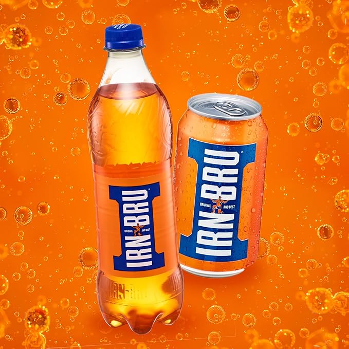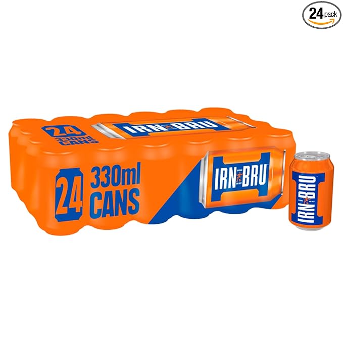 IRN-BRU Original Scottish Sparkling Soda, Citrus Flavored Carbonated Drink - Sparkling Flavored Soft Drink, 32 Flavor Recipe, 11.1 fl oz Cans, Pack of 24