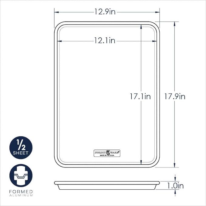 Nordic Ware Naturals Half Sheet - USA Made Aluminum Commercial Quality Sheet Pan for Baking or Roasting, Encapsulated Galvanized Steel Rim Prevents Warping, 2-Pack