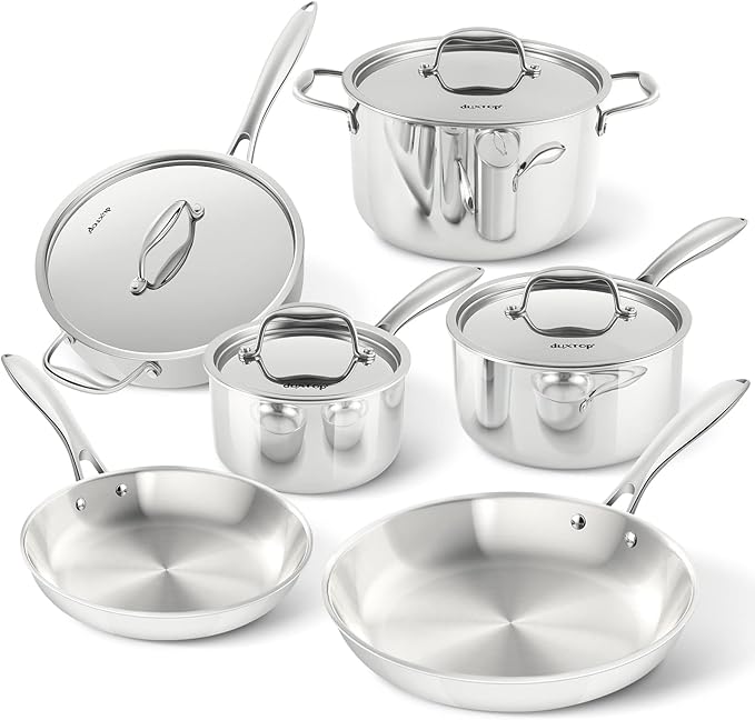 Duxtop Whole-Clad Tri-Ply Stainless Steel Induction Cookware Set, 10PC Kitchen Pots and Pans Set