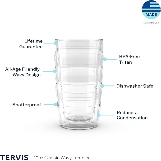 Tervis Clear & Colorful Tabletop Made in USA Double Walled Insulated Tumbler Travel Cup Keeps Drinks Cold & Hot, 10oz Wavy, Clear