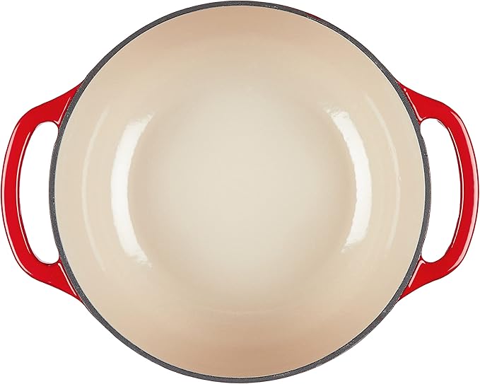 Lodge 4.5 Quart Enameled Cast Iron Dutch Oven with Lid – Dual Handles – Oven Safe up to 500° F or on Stovetop - Use to Marinate, Cook, Bake, Refrigerate and Serve – Island Spice Red