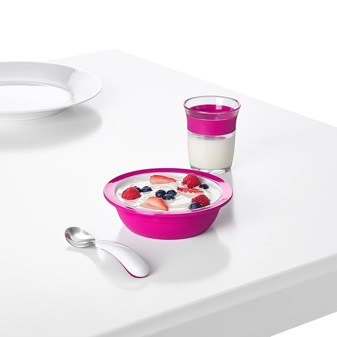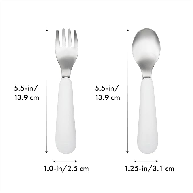 About This Easy-to grip curved non-slip handles help children master self feeding Deep spoon for easy scooping Rounded fork tines... Read more