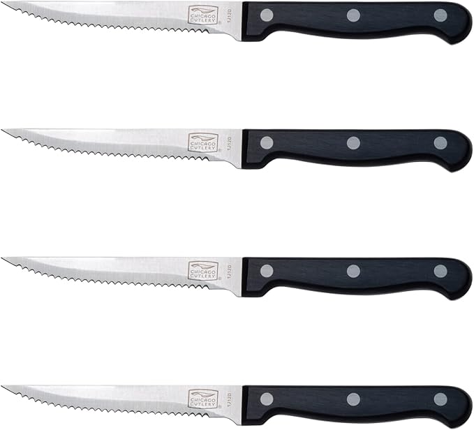 Chicago Cutlery Essentials 4-Piece Serrated Steak Knives, 4.5" Stainless Steel Blades for Effortless Cutting, For Home Kitchen and Professional Use