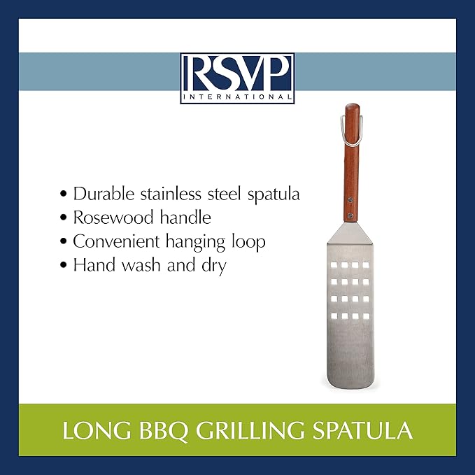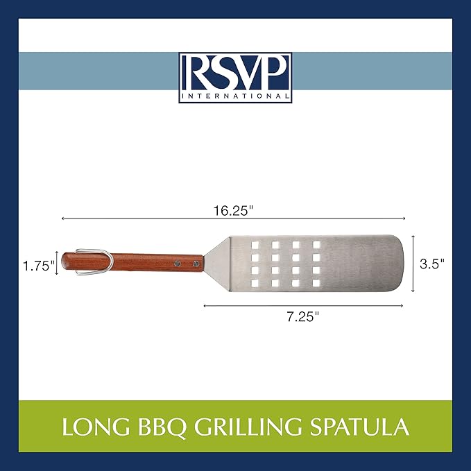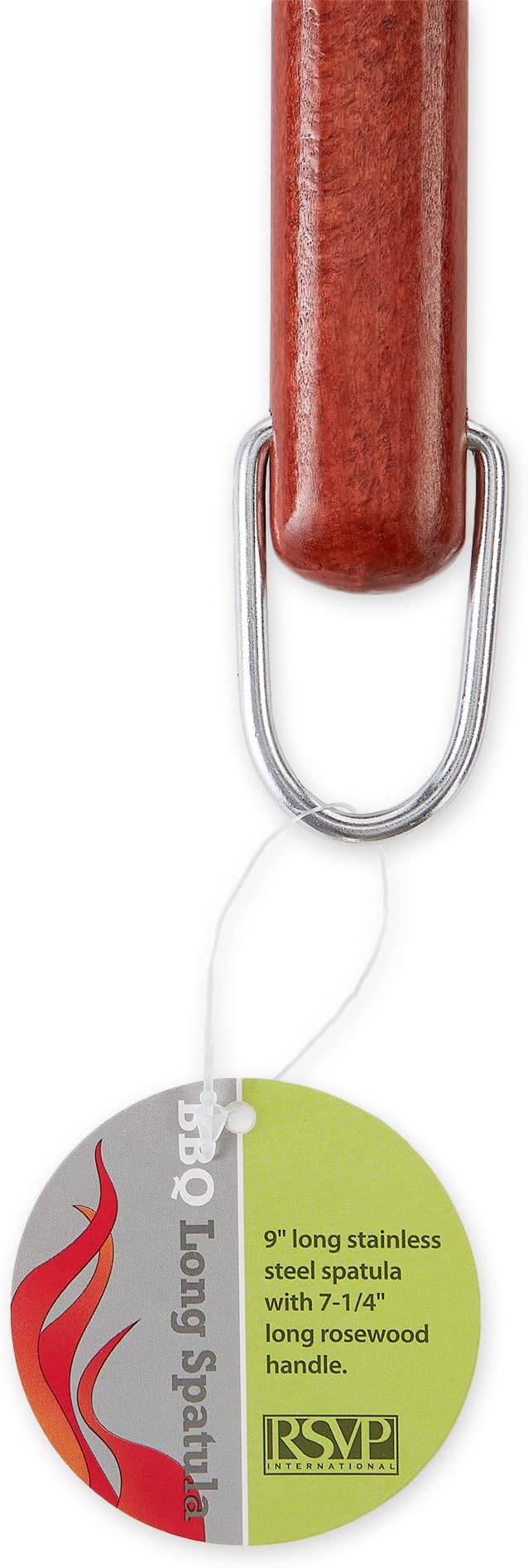 RSVP International Endurance (BQ-FLP) BBQ Long Spatula Flipper, 16.25" | Flip Burgers & Other Food w/ Long Handle that Keeps Hands Safe from Fire | Made from Stainless Steel & Rosewood